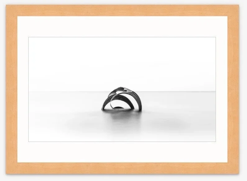 “Mary’s Shell public art on the beach at Cleveleys, Lanchashire. Designed to be submerged as the tide comes in. Captured using a long exposure and in timeless mono to give a minimalist abstract image”